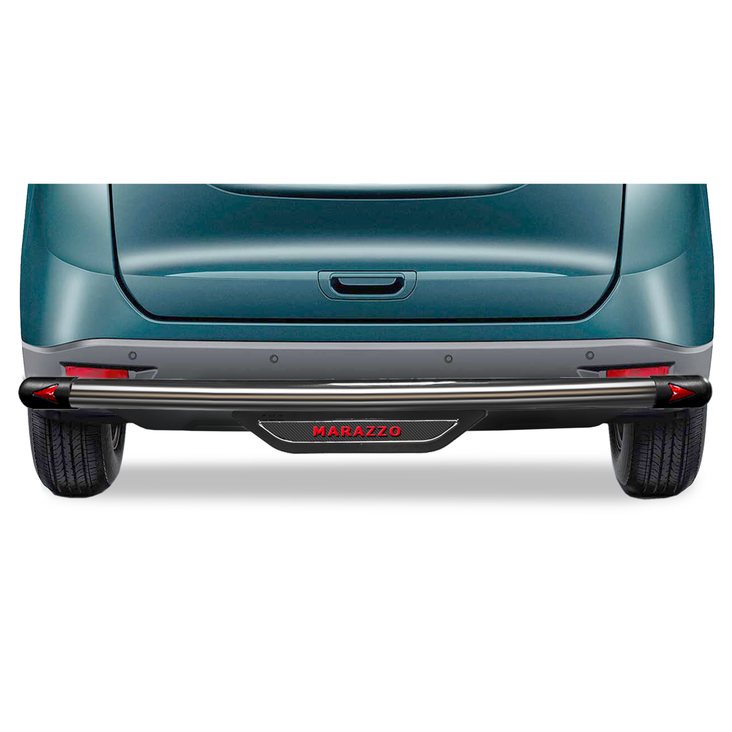 The Mahindra Marazzo Rear Protection is a practical accessory designed to safeguard the rear bumper from scratches, scuffs, and minor impacts. Made from high-quality, durable materials, this protector helps maintain the vehicle’s appearance, especially useful during parking and loading activities. It integrates seamlessly with the Marazzo’s rear design, providing both functional protection and a refined look