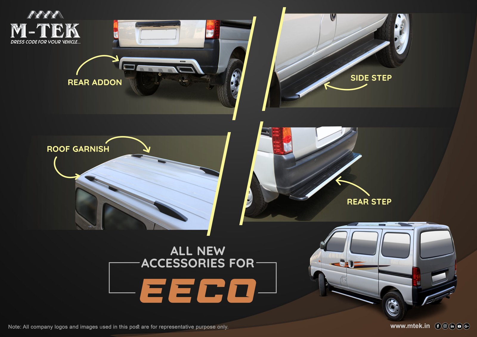 The Maruti Suzuki Eeco offers a range of accessories designed to enhance both its functionality and aesthetics. These accessories include stylish wheel covers, durable seat covers, and all-weather floor mats, providing a blend of comfort and protection for the vehicle’s interior. Exterior options like body side moldings and bumper protectors add a layer of protection and style. Additionally, roof rails and carriers are available for those needing extra storage space, making the Eeco a versatile choice for both personal and business use.