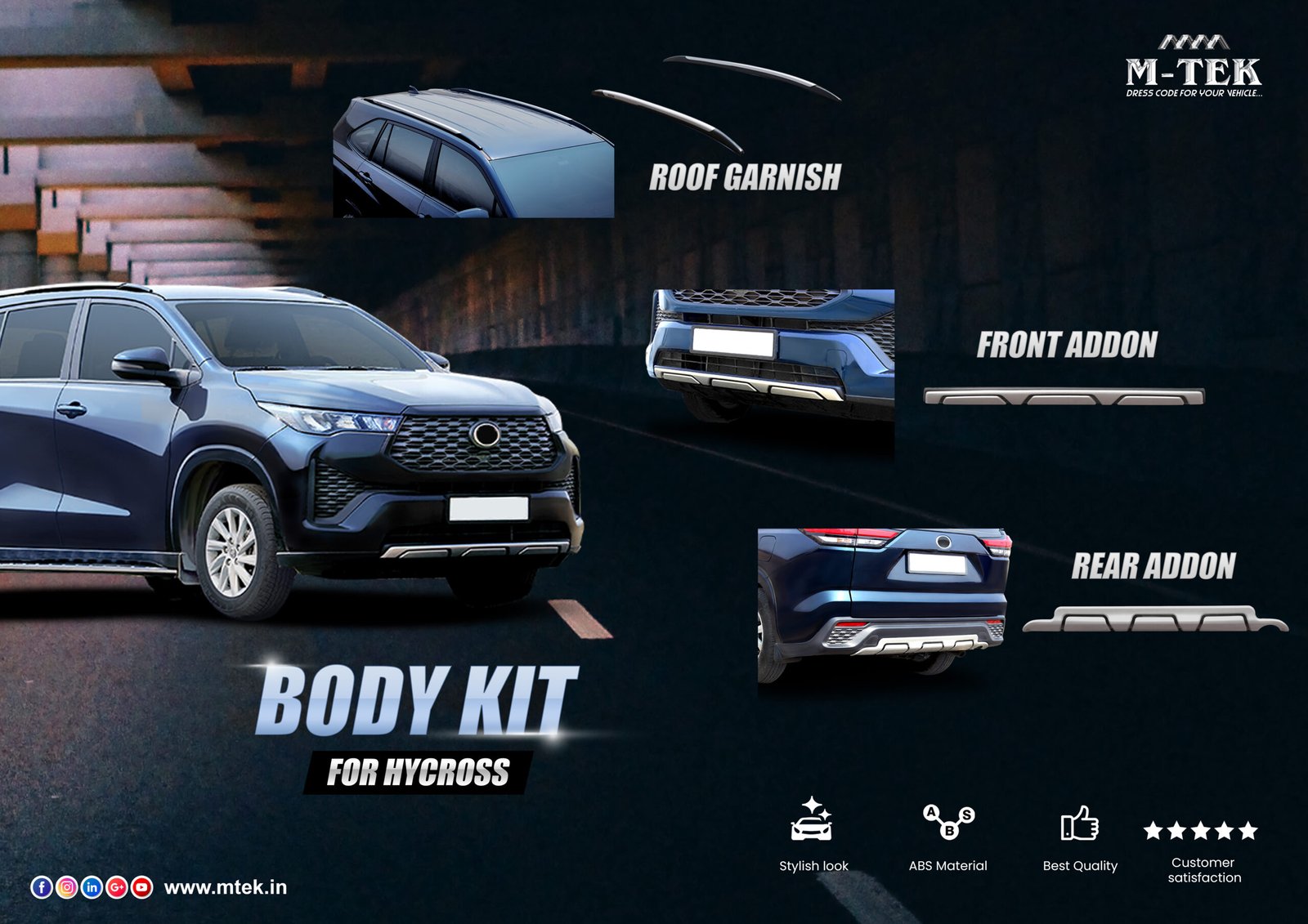 The Toyota Hycross Accessories offer a range of enhancements to elevate both the functionality and style of the SUV. A Body Kit transforms the Hycross with sporty elements like redesigned bumpers, side skirts, and a rear spoiler, giving it a more dynamic and aerodynamic appearance. For practical use, the Rear Protector shields the bumper from everyday damage, while the Carrier provides extra storage space for luggage and gear.